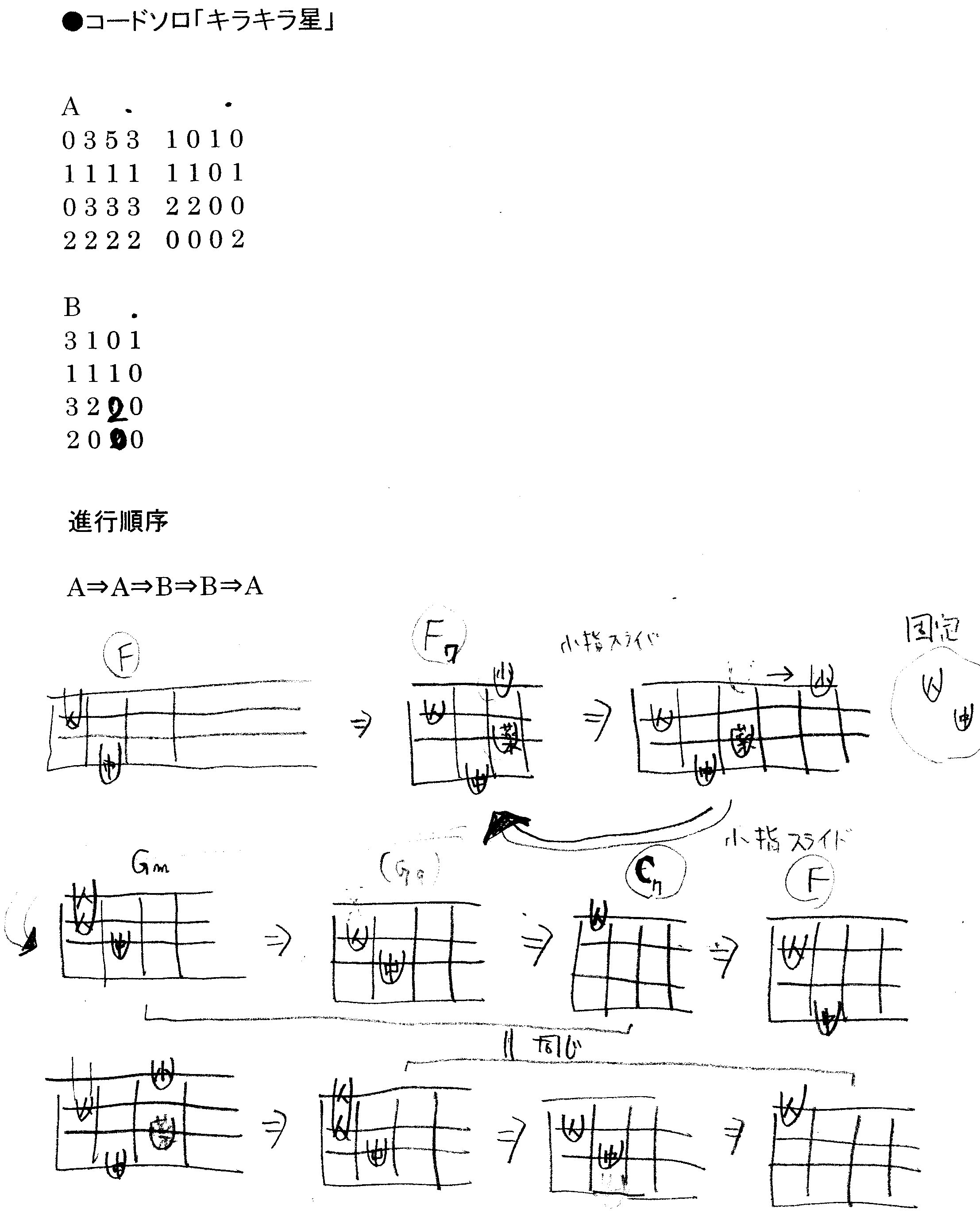 コードソロという弾き方です。譜面の各列を2回ずつ鳴らしてください。