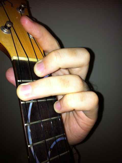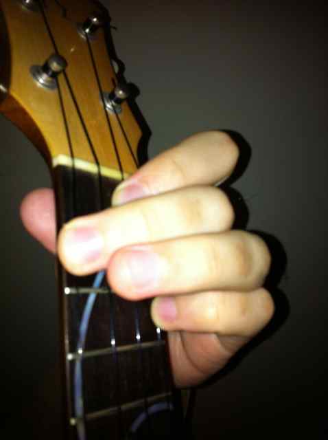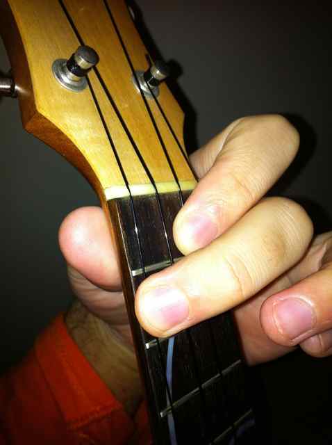 ここから、1弦3フレットのCの音を足します。次のコードの弾きやすさのために、Cは小指で! そしてF# Fに戻りますが、人差し指を離して、ヘッド側にスライドするだけで簡単に弾けますよ! こういう細かい部分も楽に弾けるように工夫しつなぎ目なくスムースに弾くのがレガートなのです!【右手の弾き方】肘を支点に上下に素早く腕を動かし中指のはら(第一関節あたり)で弦をこする。バイオリンなどの刷弦楽器の4重奏のような効果を得るんです! 手首は動かさない。ポイント!このような反復運動のスピード=エネルギーは中間地点で最大となるんです。そのため、その位置をメロディを弾く1〜2源に当たるように右腕の位置を工夫します。 普通に考えると4本の弦の真ん中に上下運動の中心があるように感じますが。それは間違い! メロディを弾く1〜2弦の上がいいのです!普通のストローク、ストラムも同様ですよ!!! 【往復運動のスピードは中間地点で最大と成る】そのポイントが最も強調したいメロディなどの弦に当たるように右腕位置を調整する。■また、一般化して考えると往復運動する物事の最大値と最小値では活動速度が一瞬0に成ります。ああ、退屈だなと思った次の瞬間に物事は動き出すのでしょう。